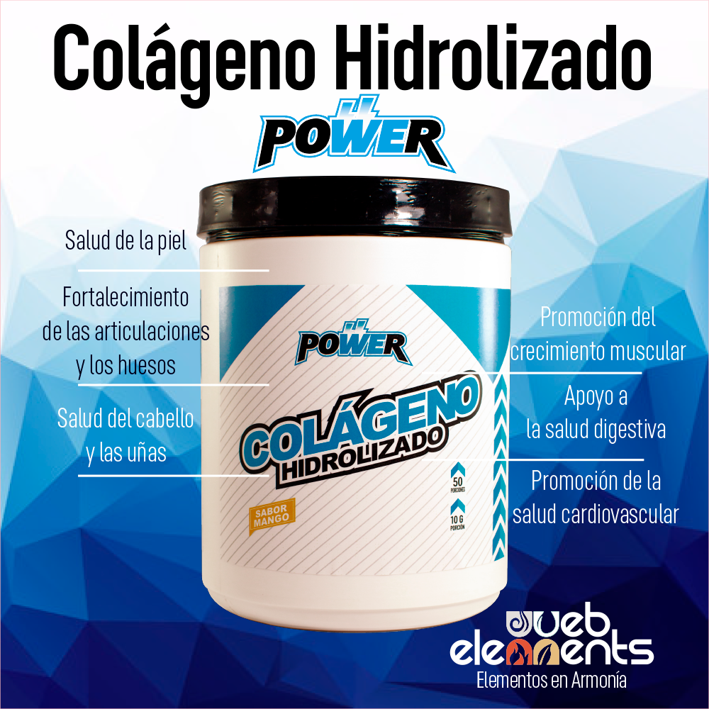 Modo de empleo: Mezclar 1 porción 10 Gr. (Scoop) de Colágeno de WEPOWER de WebElements con medio vaso de agua y agitar. Tomar Por las Mañanas y Por Las Noches.